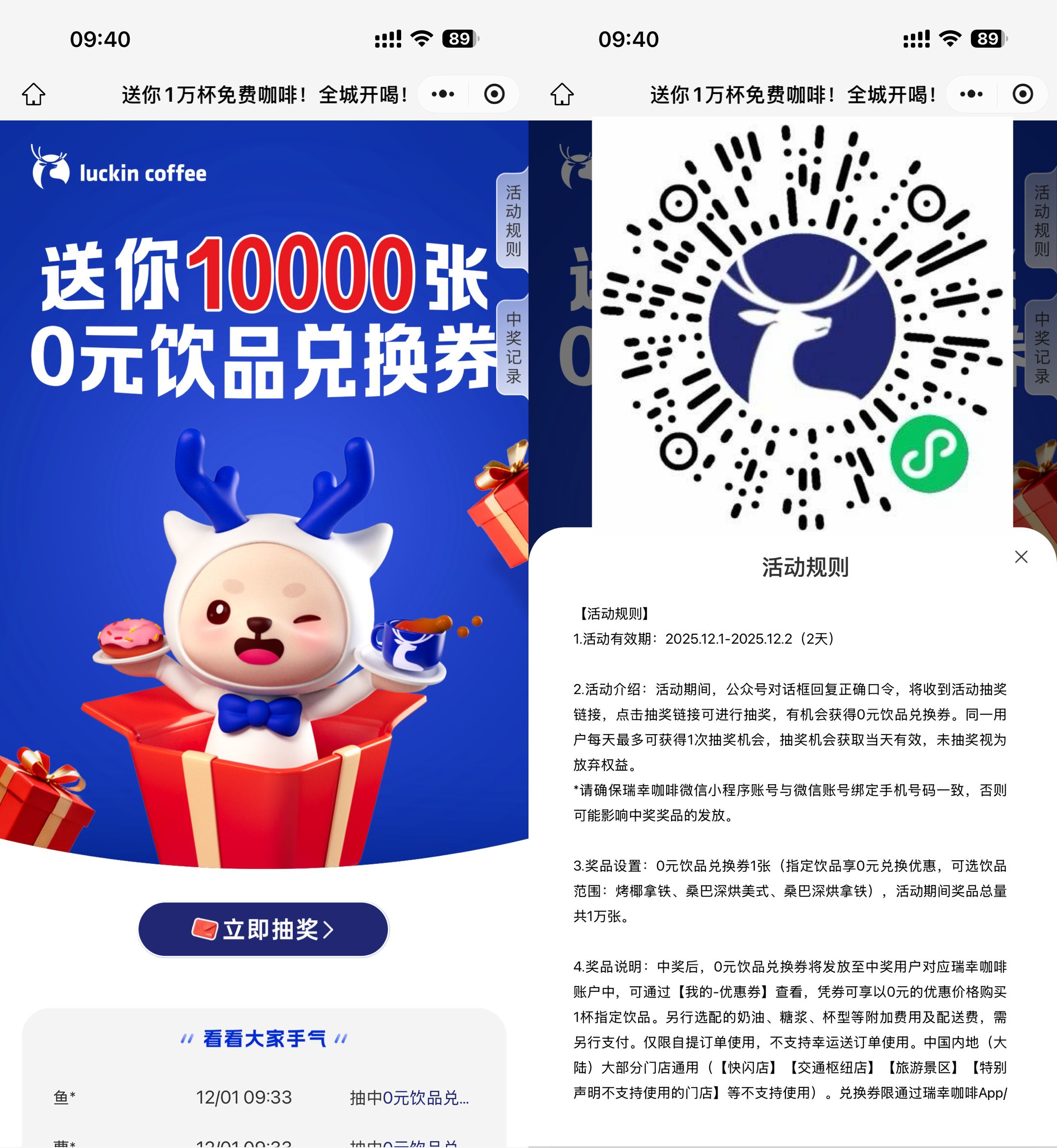 微信打开活动->直接抽1万张瑞幸免单券,可5款咖啡任选1款兑换