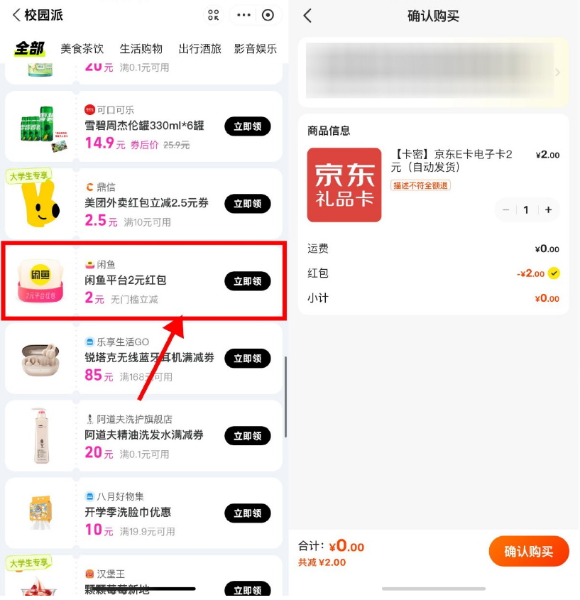 支付宝搜索“校园派”->进入下拉有2亓咸鱼红包,